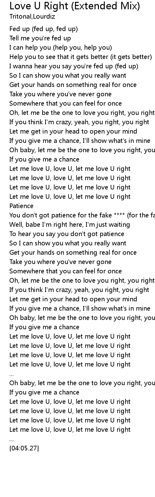 | [01:41.72] | Let me love U, love U, let me love U right |