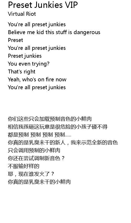 | [00:00.000] | You're all preset junkies |