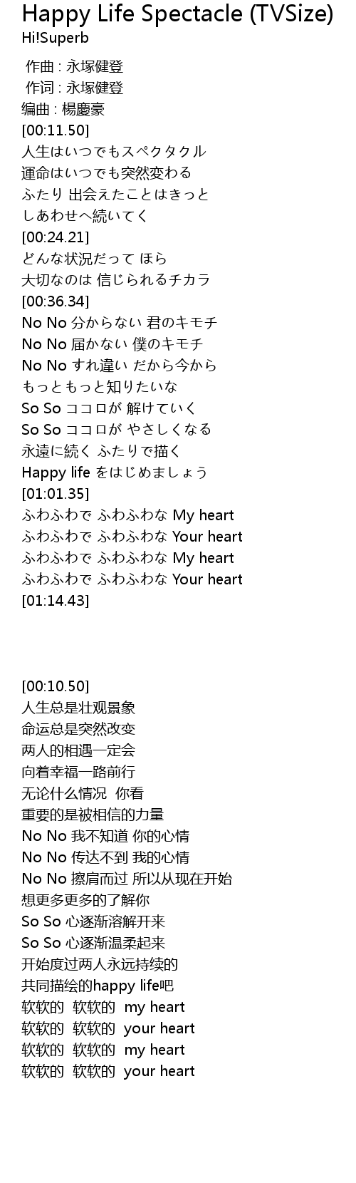 | [00:58.54] | Happy life をはじめましょう |
