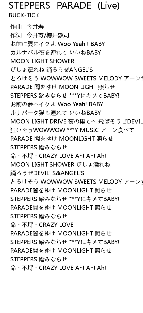 | [03:34.823] | PARADE闇をゆけ MOONLIGHT 照らせ |