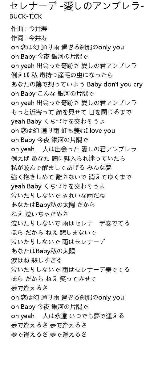 | [00:30.250] | oh yeah 出会った奇跡さ 愛しの君アンブレラ |