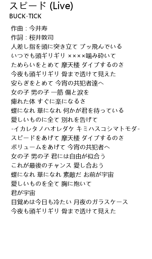 | [00:46.393] | いつでも頭ギリギリ ××××噛み砕いて |