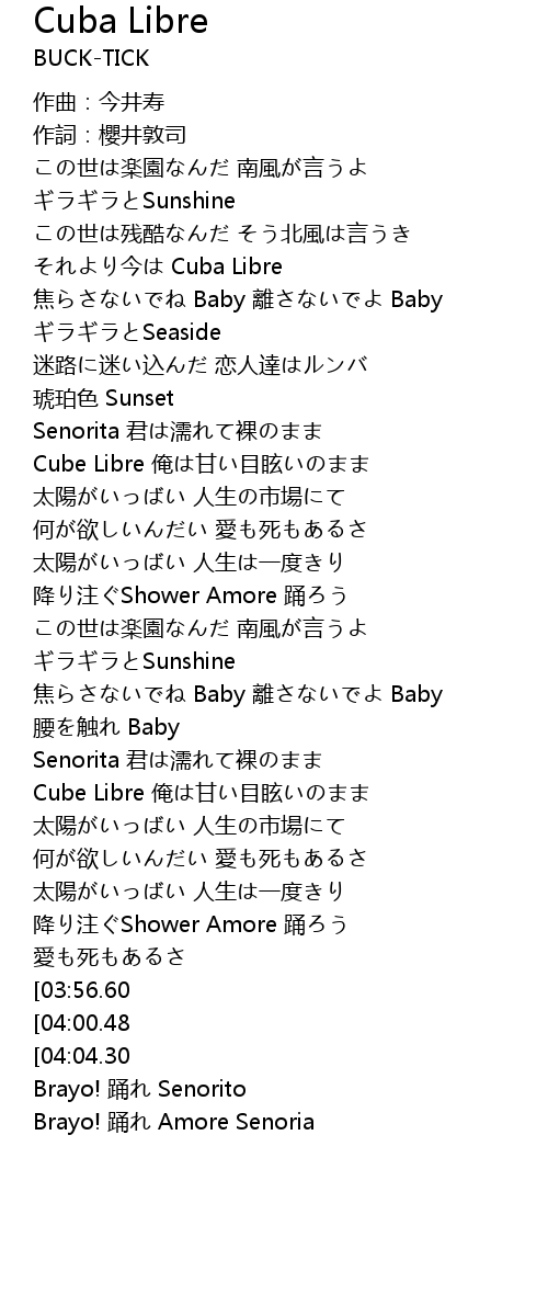 | [01:14.32] | Cube Libre 俺は甘い目眩いのまま |