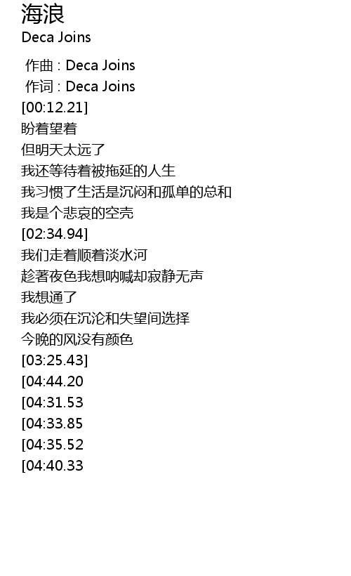 | [04:49.99][04:33.85][04:16.46][04:00.03] | 海浪在发愁 |