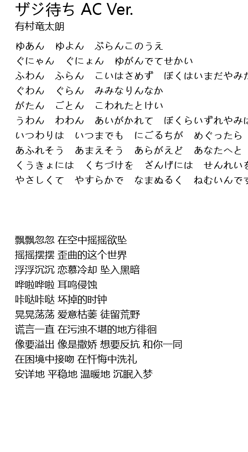 | Song | ザジ待ち AC Ver. |