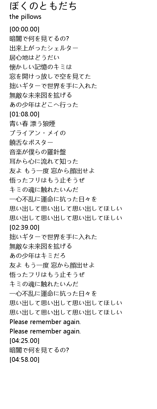 | [04:00.00] | 思い出して思い出して思い出してほしい |