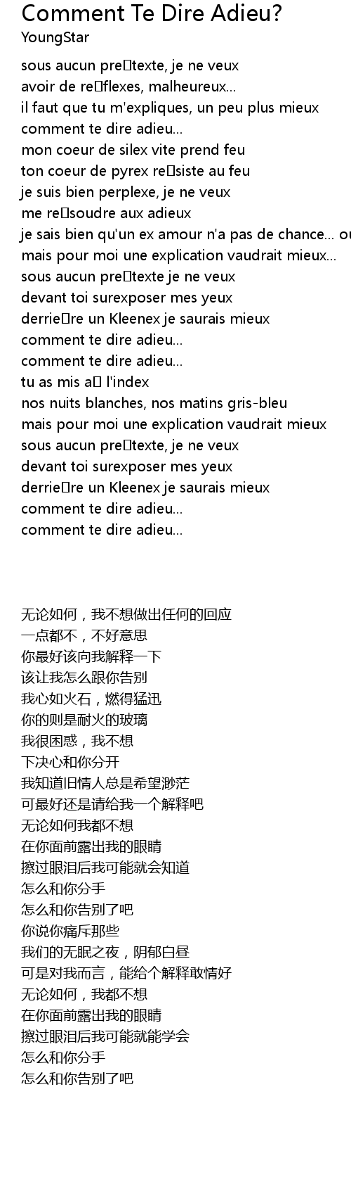 | Song | Comment Te Dire Adieu? |