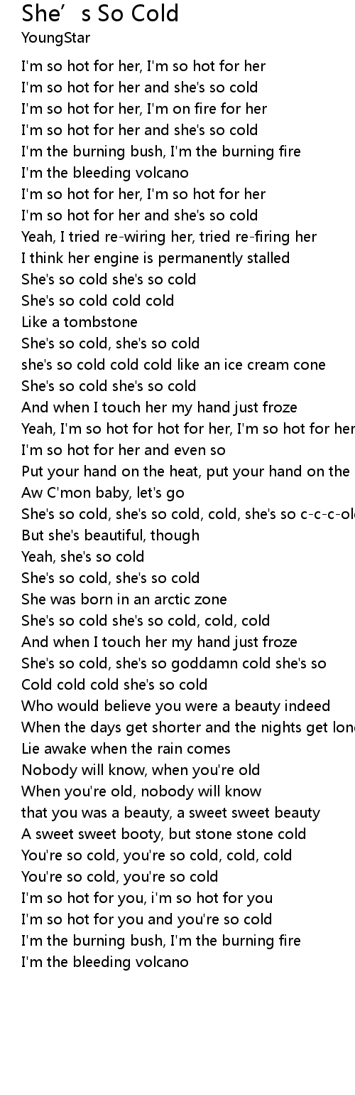 She's so cold, she's so cold, cold, she's so c-c-c-old |