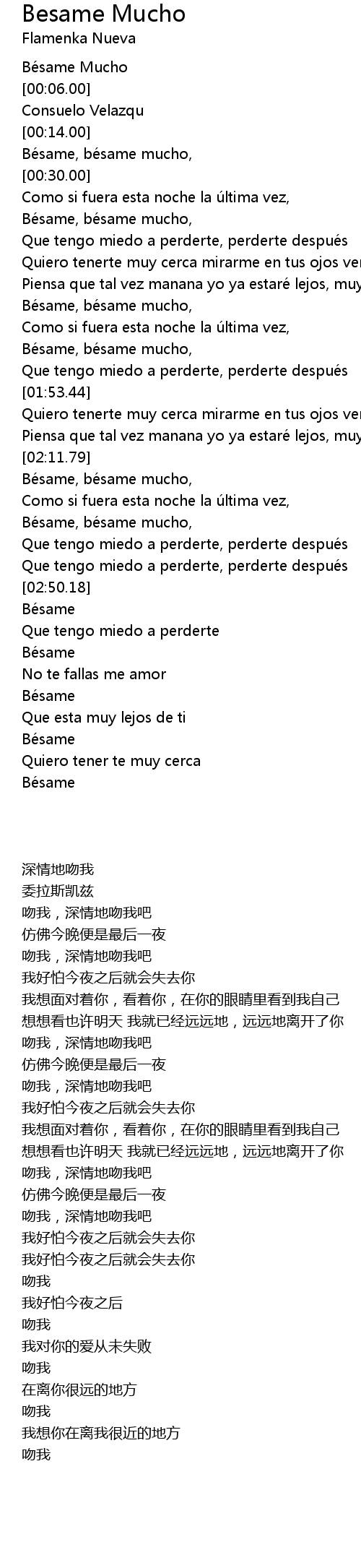 | [00:37.69] | Como si fuera esta noche la última vez, |