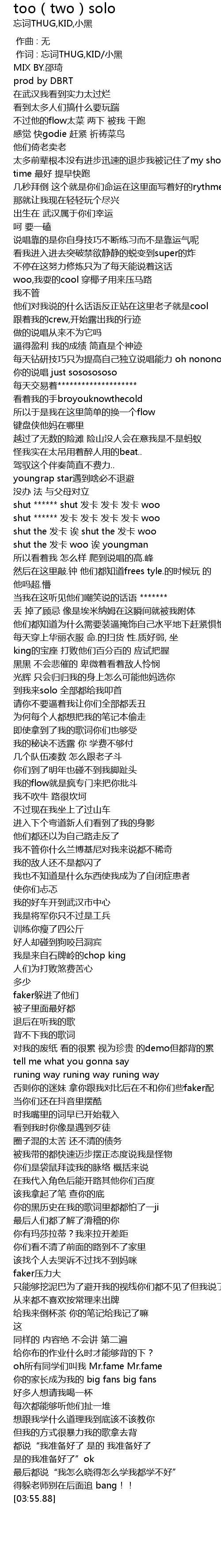| [01:02.68] | 每天钻研技巧只为提高自己独立说唱能力 oh nonononono |