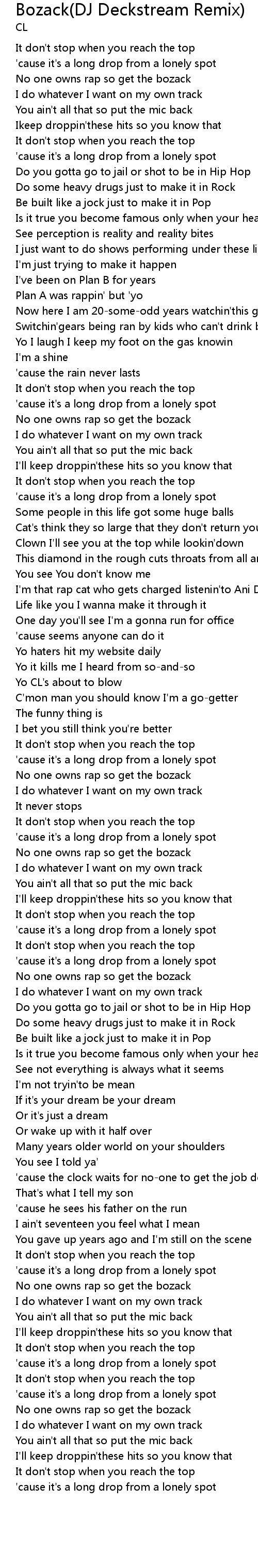 | [00:16.37] | No one owns rap so get the bozack |