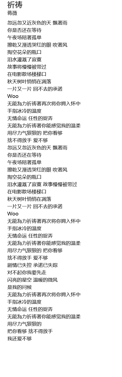 | 无能為力祈祷著再次将你拥入怀中 | |