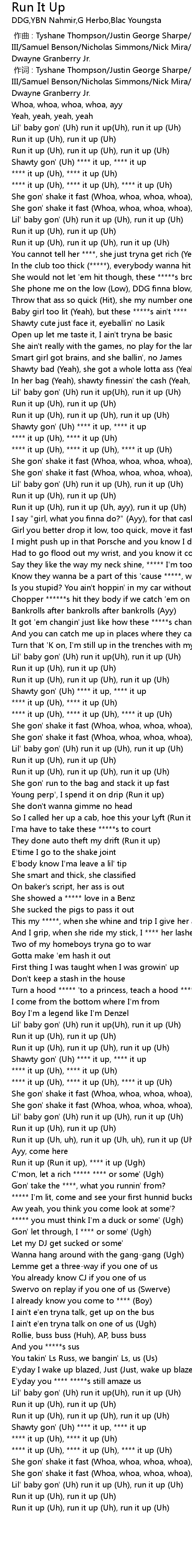 | [01:28.23] | Run it up Uh, run it up Uh, ayy, run it up Uh |