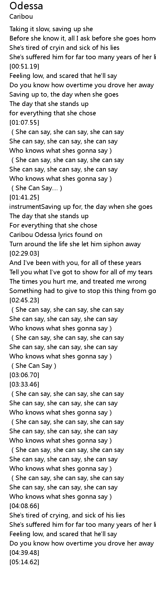 | [02:22.39] | Caribou Odessa lyrics found on |