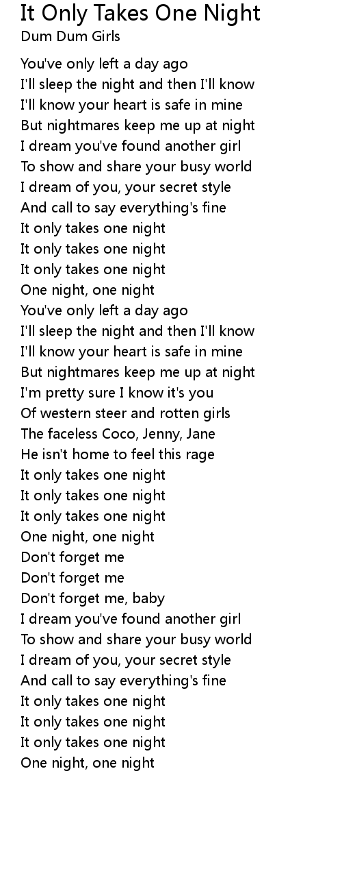 It only takes one night |