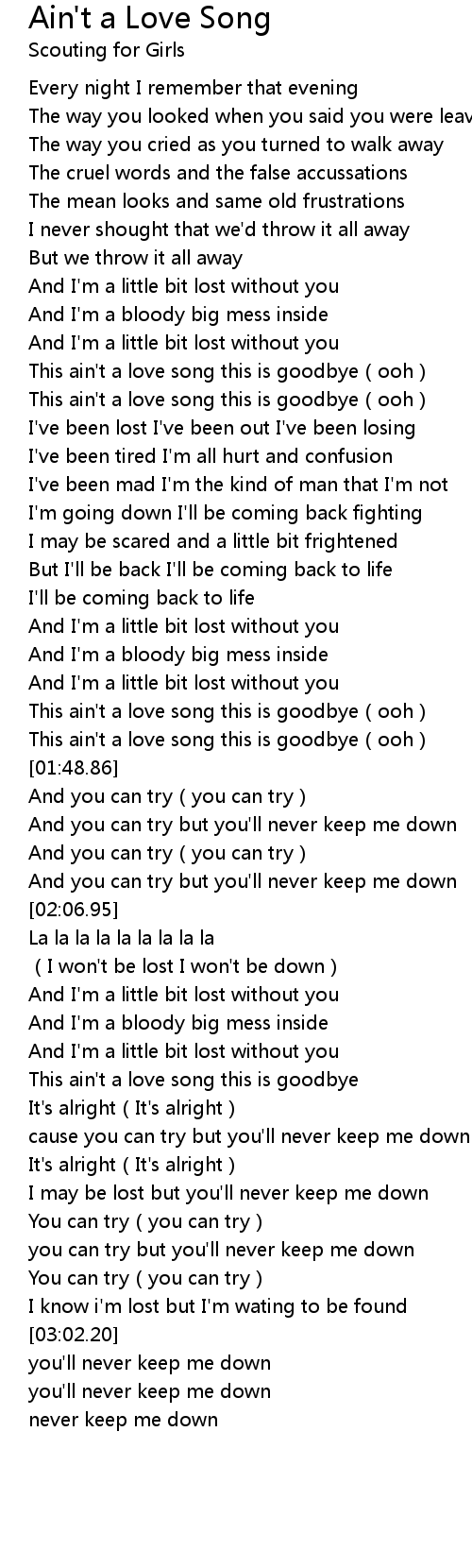 | [01:46.41] | This ain' t a love song this is goodbye ooh |