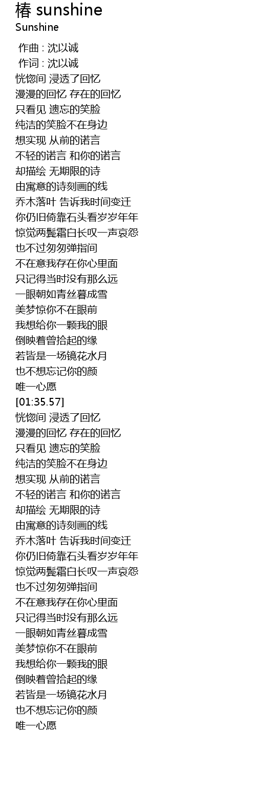 | [00:00.000] | zuò qǔ : shěn yǐ chéng |