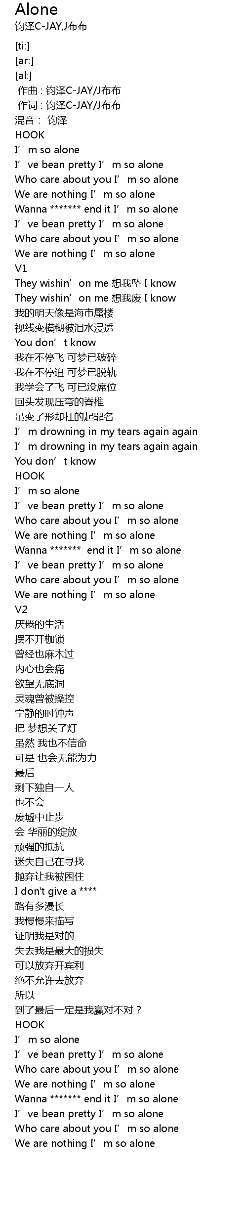 | [00:01.000] | 作词 : 钧泽C-JAY/J布布 |
