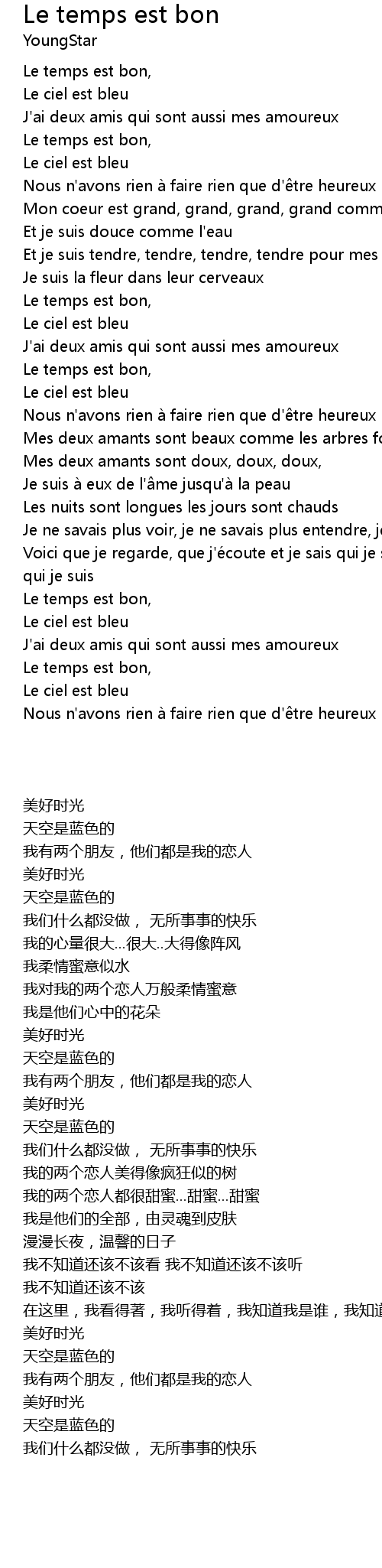 | [00:35.39] | Le temps est bon, |