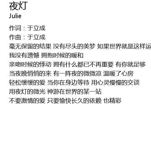 | 轻松缓缓的爱 当你在身边等待 用心灵慢慢的交谈 用夜灯的微光 神游在世界的某一站 | |