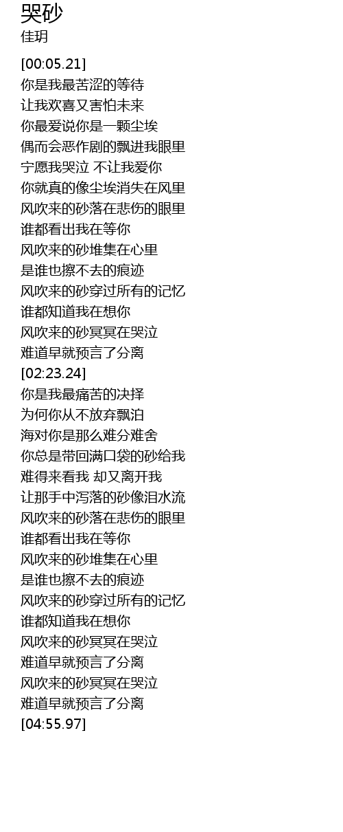 | [04:21.91] | 风吹来的砂冥冥在哭泣 |