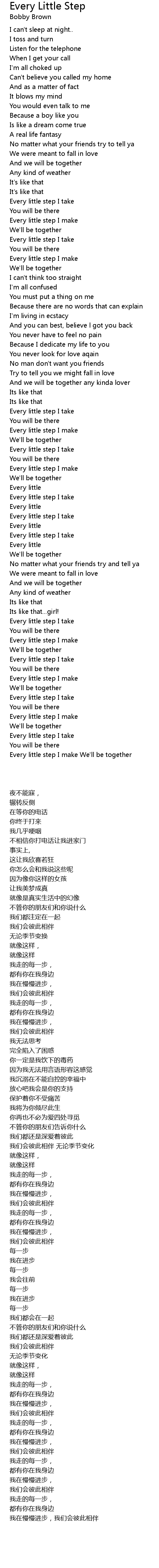 Every little step I make We'll be together |