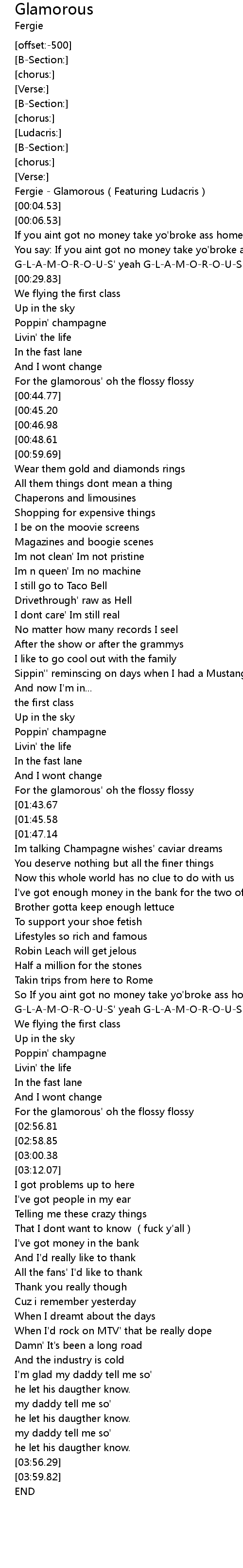 | [00:00.00] | Fergie - Glamorous(Featuring Ludacris) |