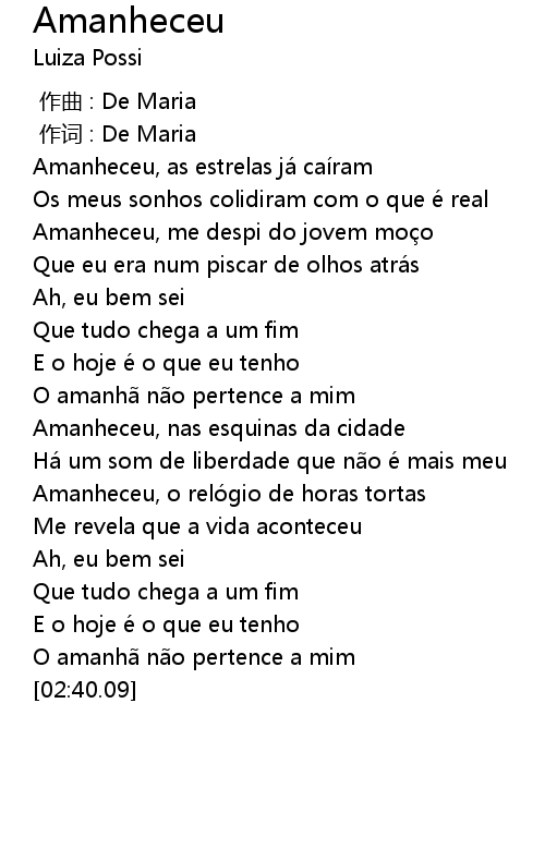 | [00:04.30] | Amanheceu, as estrelas ja cai ram |