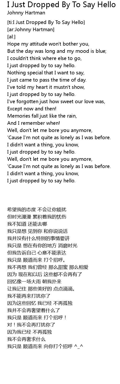[ti:I Just Dropped By To Say Hello] |