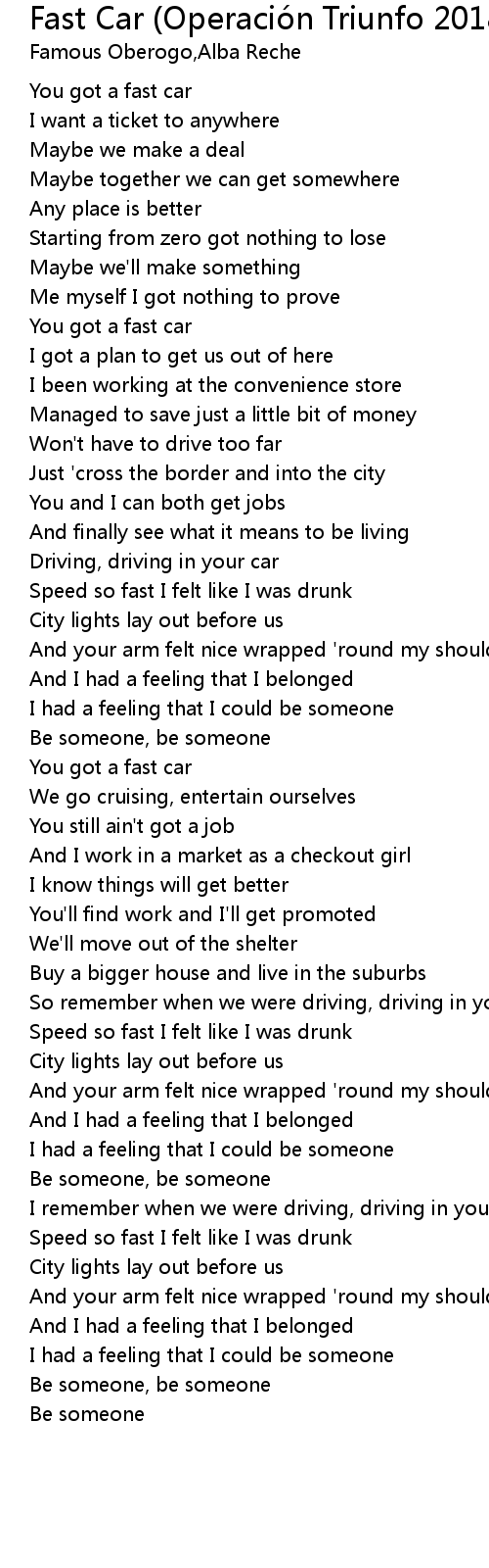Fast Car Operacio n Triunfo 2018 Lyrics