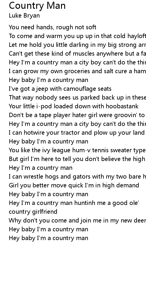 Hey baby I'm a country man |