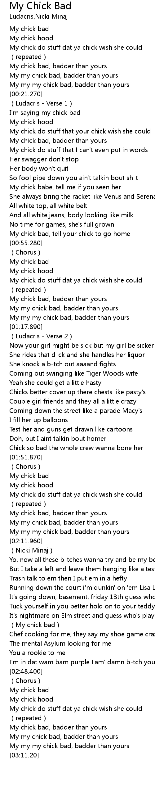| [00:53.610] | My chick bad, tell your chick to go home |