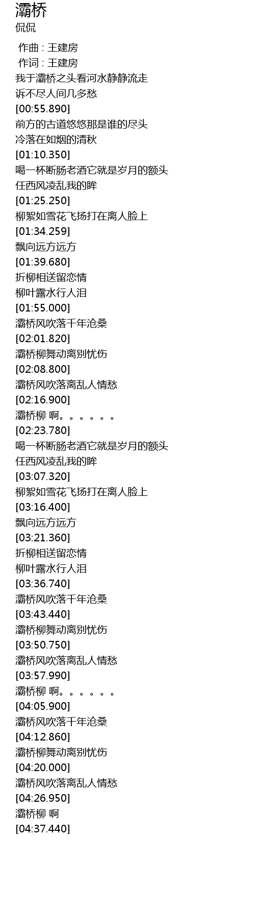 | [04:13.370] | bà qiáo liǔ wǔ dòng lí bié yōu shāng |