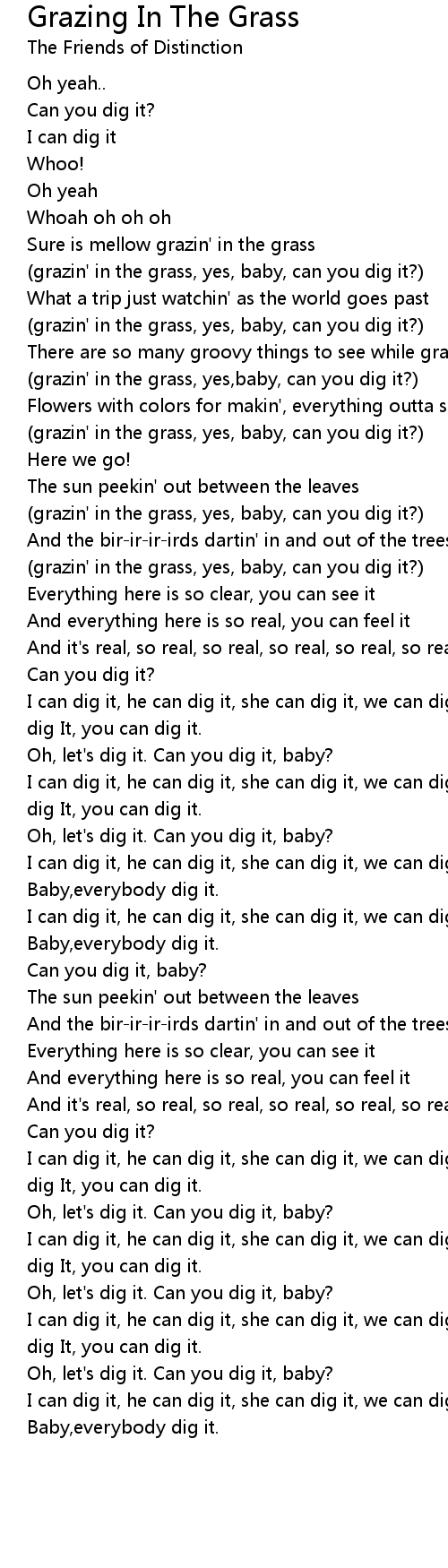 (grazin' in the grass, yes, baby, can you dig it?) |