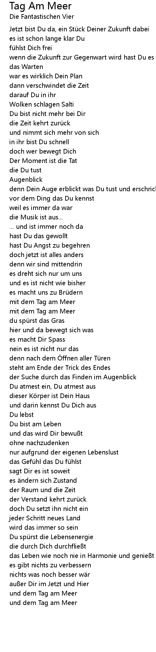 | und dem Tag am Meer |