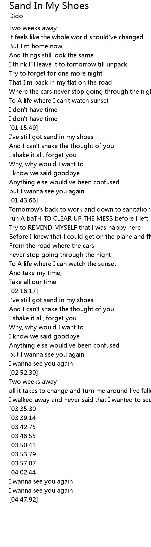 [04:05.53][03:35.30] I've still got sand in my shoes