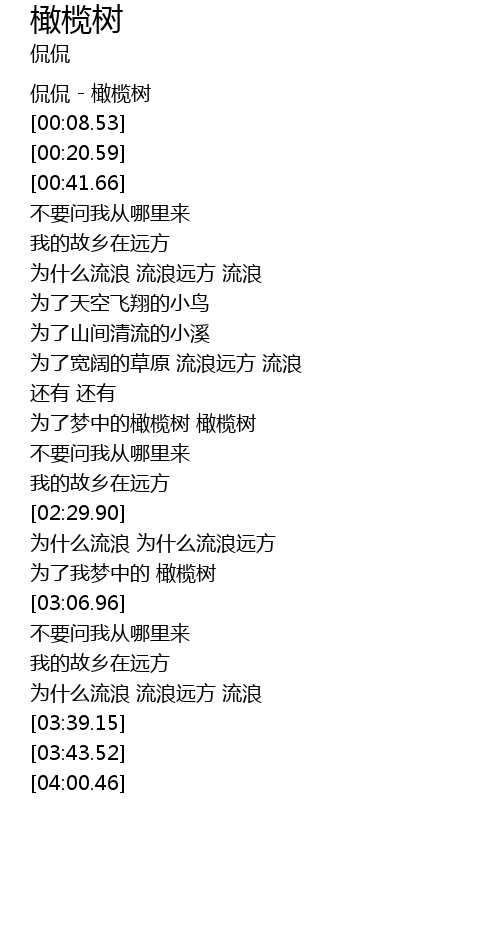 | [02:05.00] | 为了梦中的橄榄树 橄榄树 |