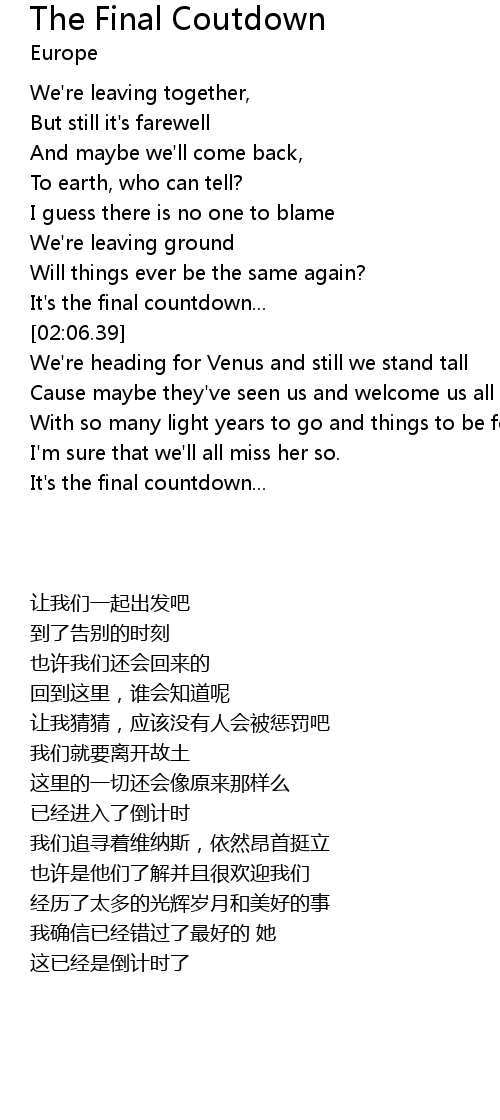It's the final countdown... |