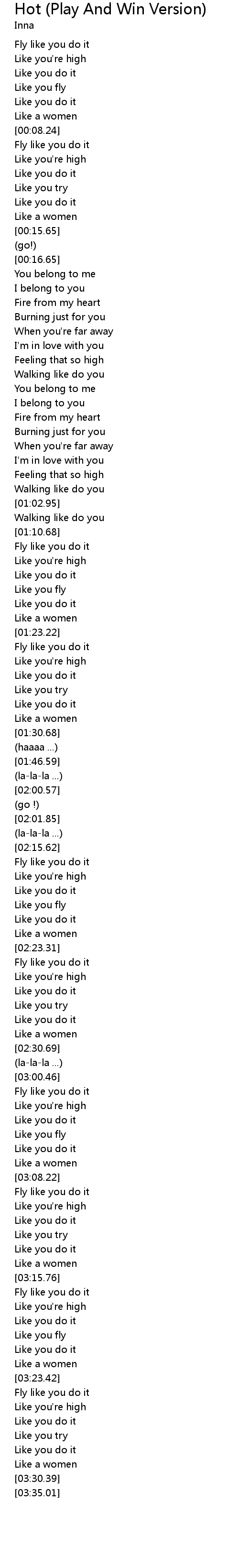 | [03:24.24] | Fly like you do it |