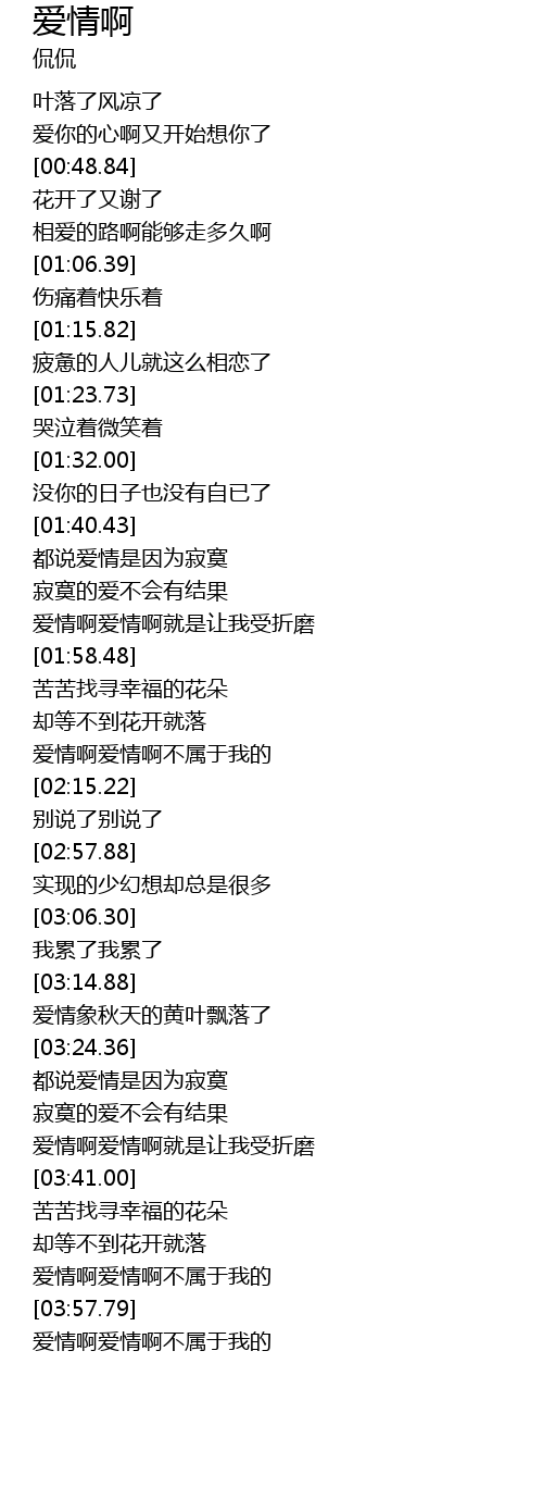 | [04:00.62] | ai qing a ai qing a bu shu yu wo de |