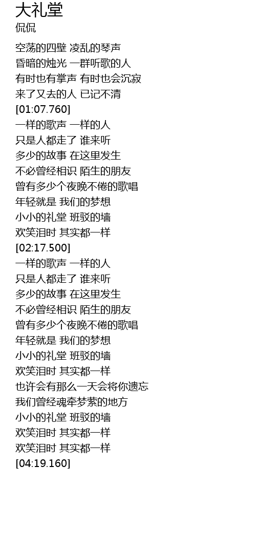 | [03:57.170] | 小小的礼堂 班驳的墙 |