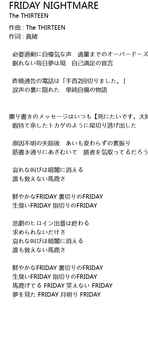 | 生臭いFRIDAY 指切りのFRIDAY | |