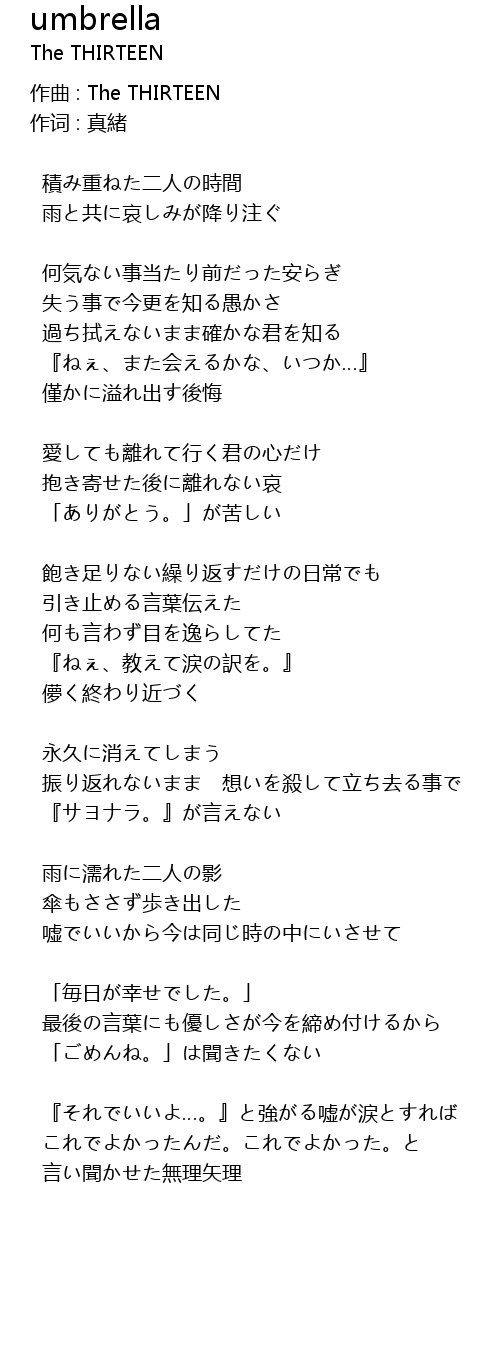 | 最後の言葉にも優しさが今を締め付けるから | |