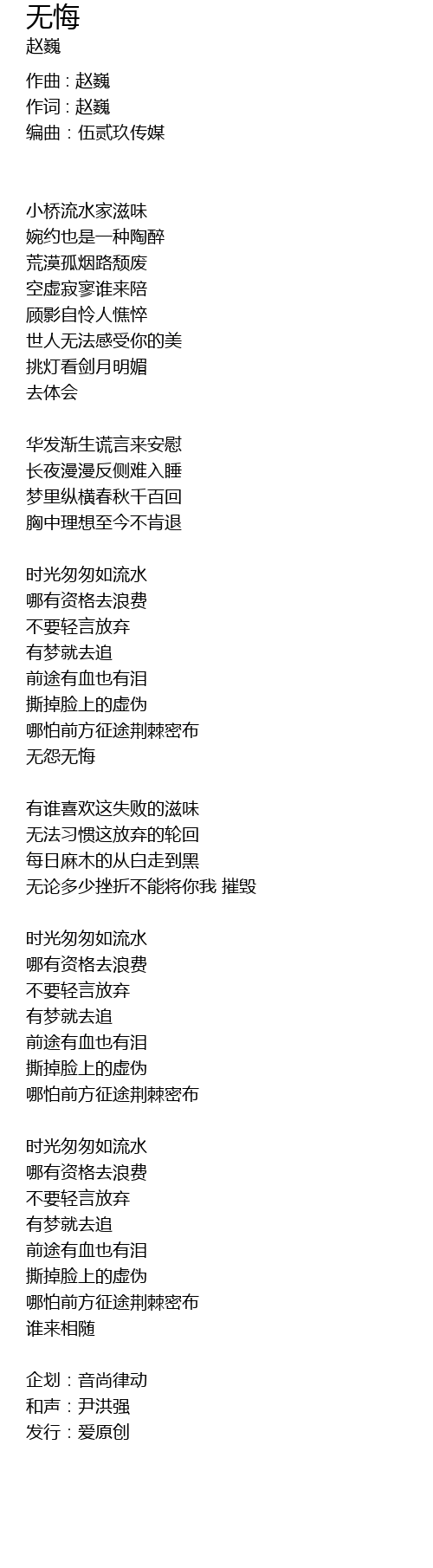 | 作词 : 赵巍 | |