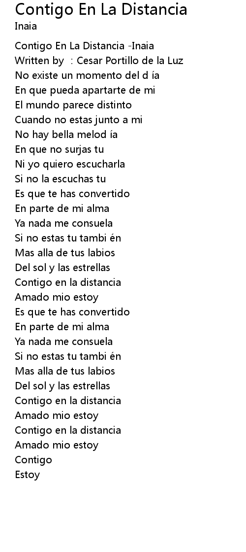 | [00:00.398] | Contigo En La Distancia Inaia |