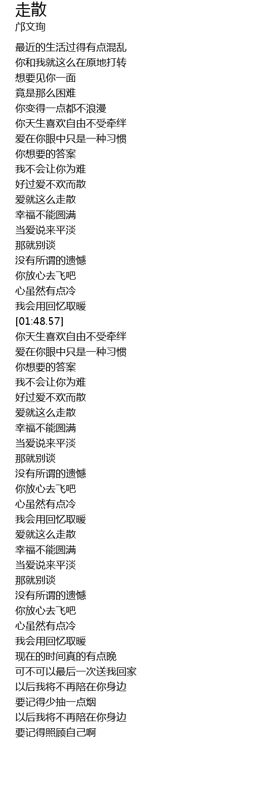 | [02:47.93] | ài jiù zhè me zǒu sàn |
