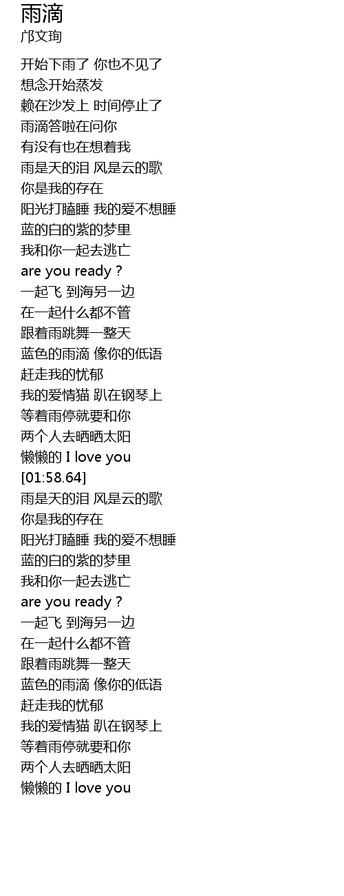 | [03:00.06] | 跟着雨跳舞一整天 |