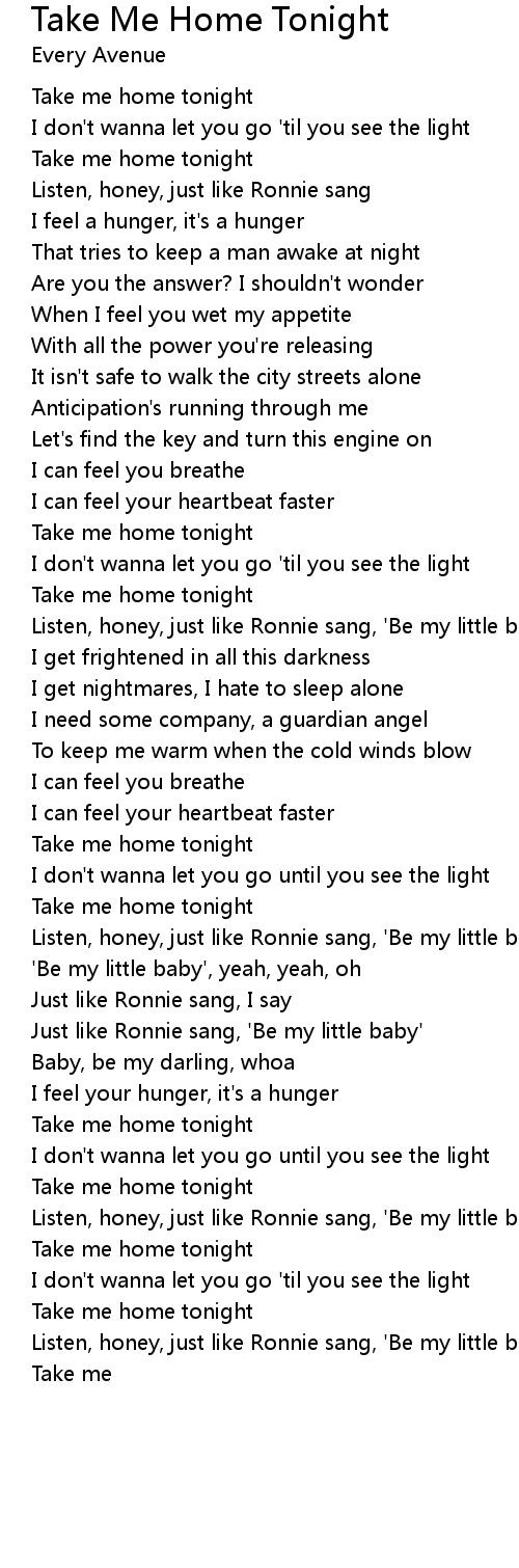 Listen, honey, just like Ronnie sang, 'Be my little baby' |