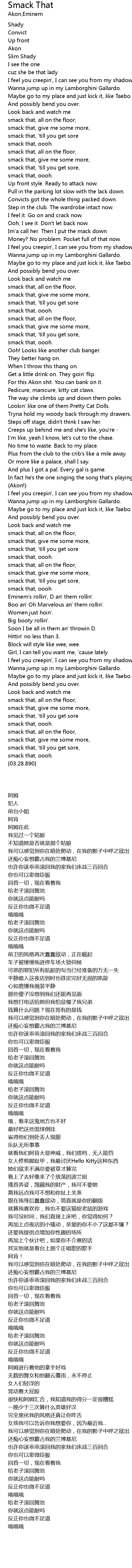 | [00:42.150] | smack that, give me some more, |