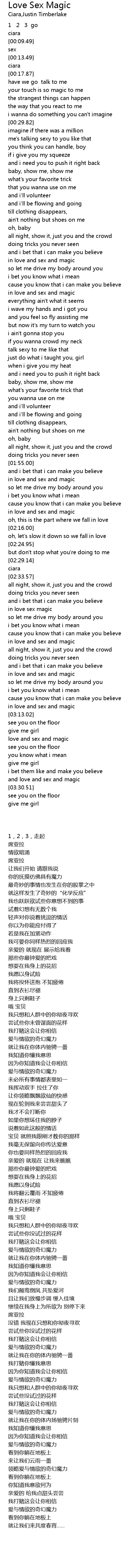 | [03:20.09] | love and sex and magic |